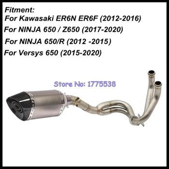 For ER6N ER6F NINJA650R Z650 Versys 650 Motorcycle Exhaust Full System Collector Header with Carbon Tip Exhaust Muffler Escape