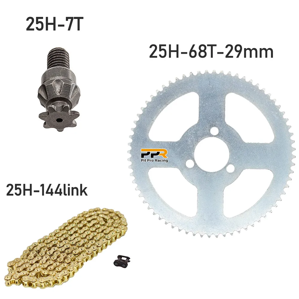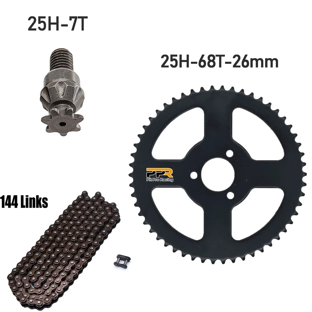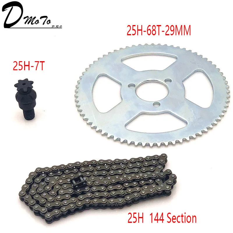 25H Chain 144 Links, 25H 68 teeth Rear Sprocket ,7 teeth sprocket shaft For Electric tricycle Mini moto Pocket Bike ATV Quad