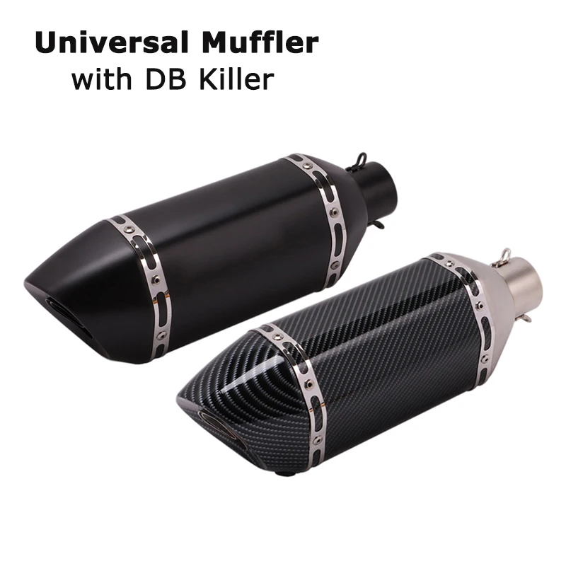 38-51MM Universal Motorcycle Exhaust Muffler Tail Pipe with Removable DB Killer Baffle Stainless Steel Carbon Fiber 380MM Length