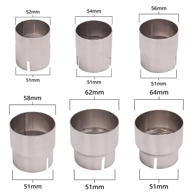 51mm to 52 54 56 58 62 64MM Exhaust Adapters Universal Motorcycle Muffler Pipe Connector Stainless Steel Conversion