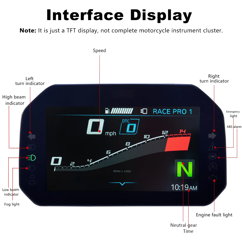 - Special Features: Motorcycle Dashboard TFT Display Instrument