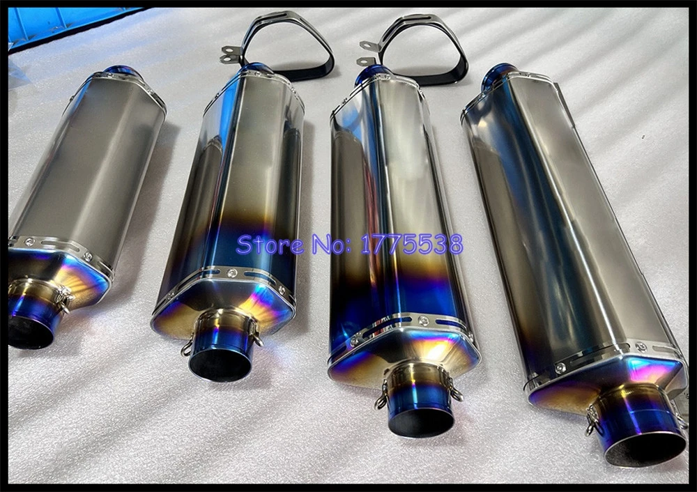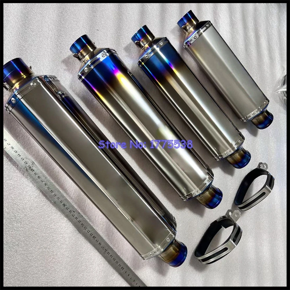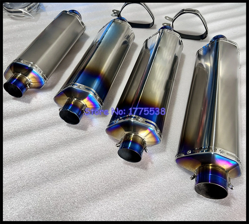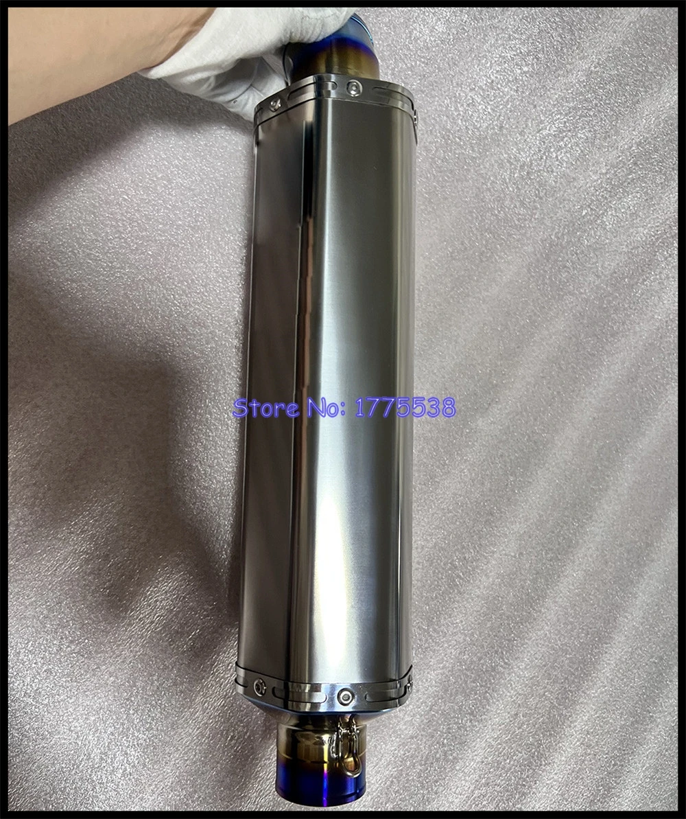 Customized Titanium Alloy ID:51mm 61mm L:420mm 470mm 530mm 580mm Motorcycle Exhaust Muffler Can with Removable DB Killer Baffle