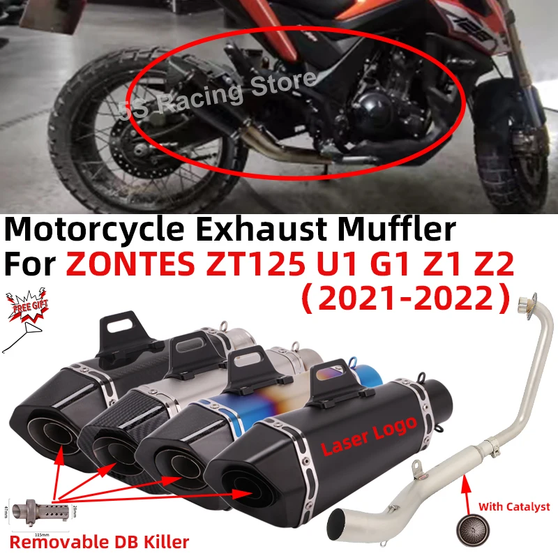 For ZONTES ZT125 U1 G1 Z1 Z2 2021 2022 Motorcycle Exhaust Muffler Full System Escape Modify Front Mid Link Pipe With Catalyst