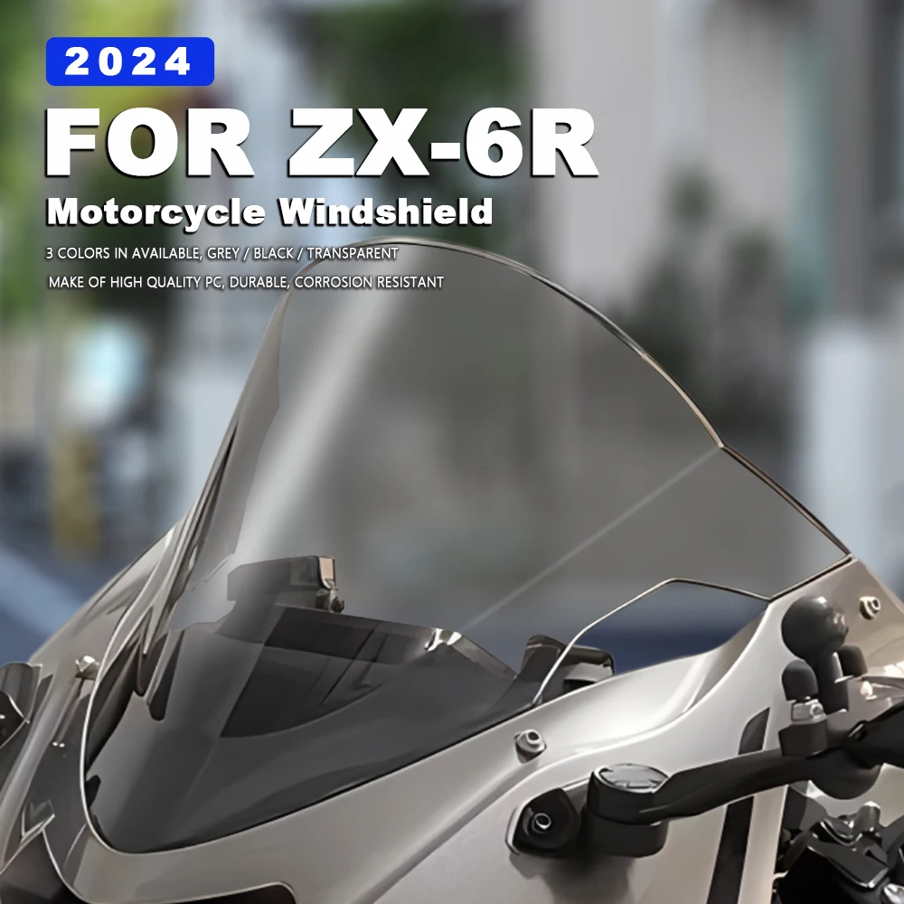 Motorcycle Windshield Plastic Windscreen for Kawasaki ZX6R 2024 ZX 6R Ninja ZX-6R Accessories Transparent Grey Wind Deflectors