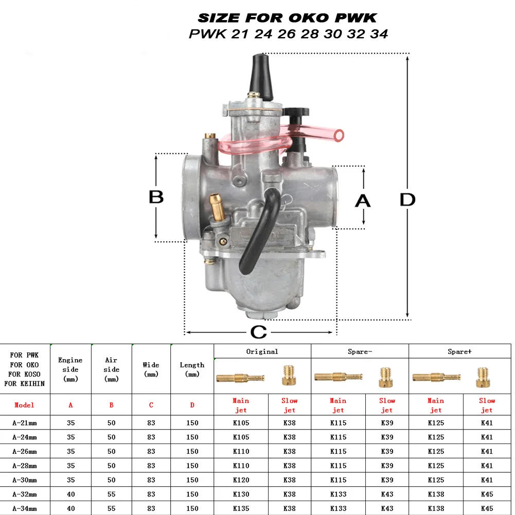 PWK 21 24 26 28 30 32 34mm With Power Jet Carburetor For OKO 2T 4T Motorcycle Carb For Dirt Bike Pit Bike Scooter ATV Quad UTV