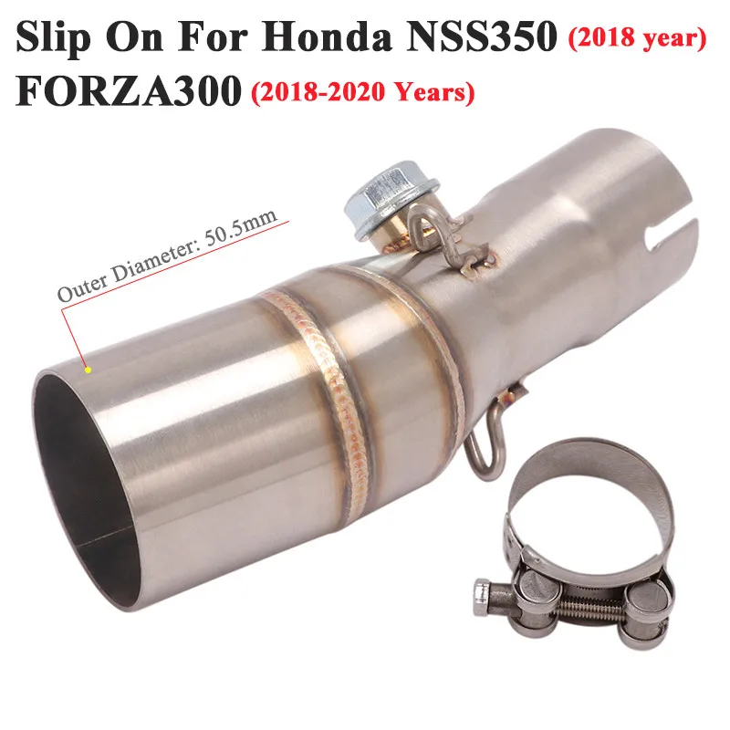 Slip on For Honda Forza 300 2018-2021 50.8mm Motorcycle Exhasut Middle Link Pipe Escape Moto Scooter Modify Muffler Tube Connet